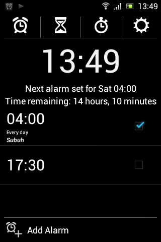 Tampilan utama aplikasi ini terlihat seperti apda gambar di bawah. Sobat dapat membuat lebih dari satu alarm.