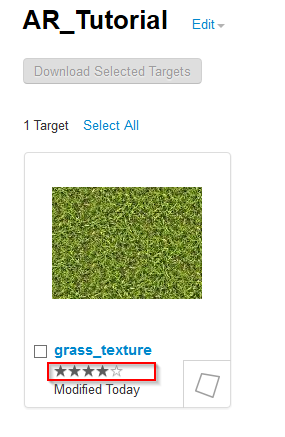 Setelah marker berhasil di upload Vuforia akan mengkalkulasi kelayakan marker. Semakin bertexture dan semakin tinggi contrast marker maka semakin banyak bintang yang didapat, itu berarti semakin bagus pula kualitas marker. Marker yang bagus akan meminimalisir tingkat marker lost yangitu keadaan dimana marker tidak dapat di deteksi.